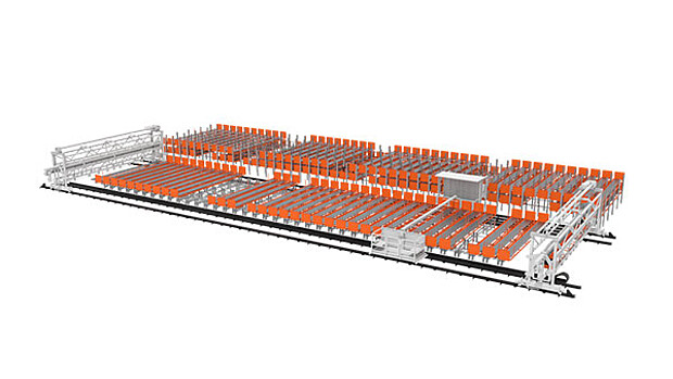 An integrated mini storage and retrieval machine (SRM) automatically fills buffer spaces with new cassettes while two operators simultaneously navigate across the storage area on an ergonomically designed operator trolley. This allows them to remove or place material directly from or into the cassettes - safely and efficiently.