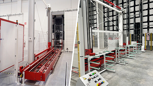 The storage and retrieval machine (SRM) provides the required cassettes in defined buffer locations overnight. The lift station takes these cassettes and places them precisely on the processing level using a manually controllable lifting beam. The operator can access up to five stacked cassette locations in the racking block - flexibly, precisely and effortlessly.