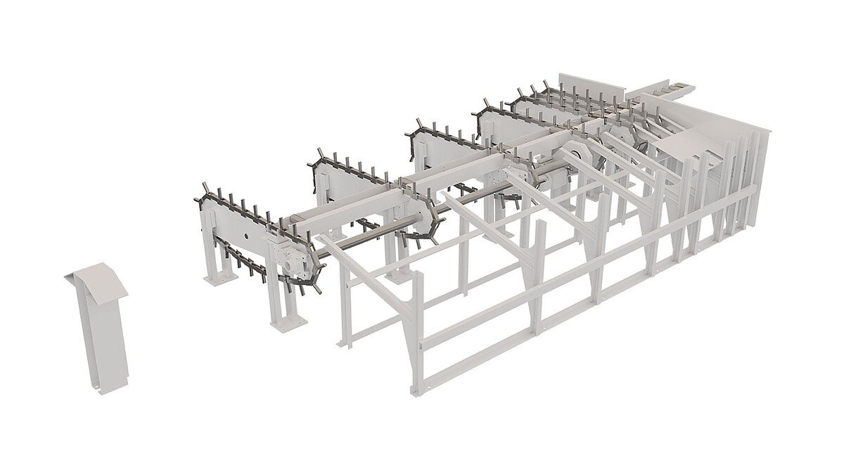The return storage polder is used for the automatic return storage of offcuts; smaller offcuts are disposed of in an offcut container. The return storage polder is installed to the right of the magazine roller conveyor in the direction of material flow.