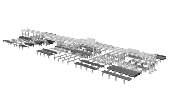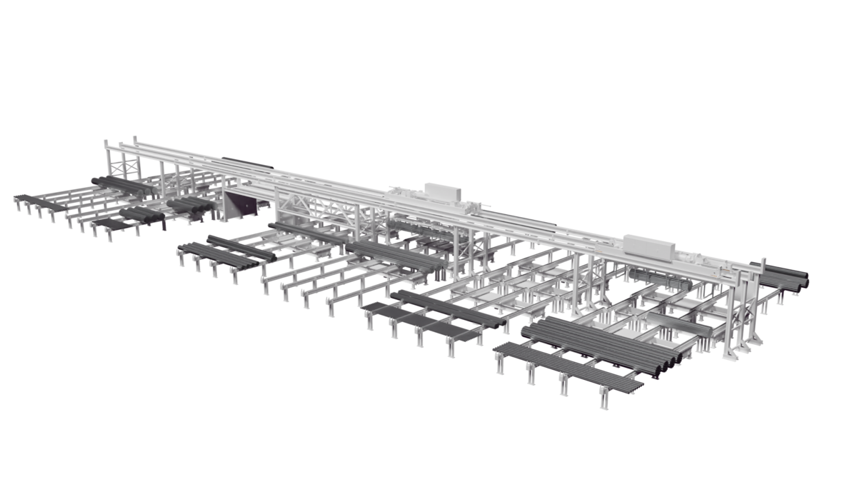 KASTOrail is an intelligent material distribution system that efficiently and ergonomically prepares picking bundles for dispatch. At the same time, individual materials, such as beams, can also be transported between processing cuts.
