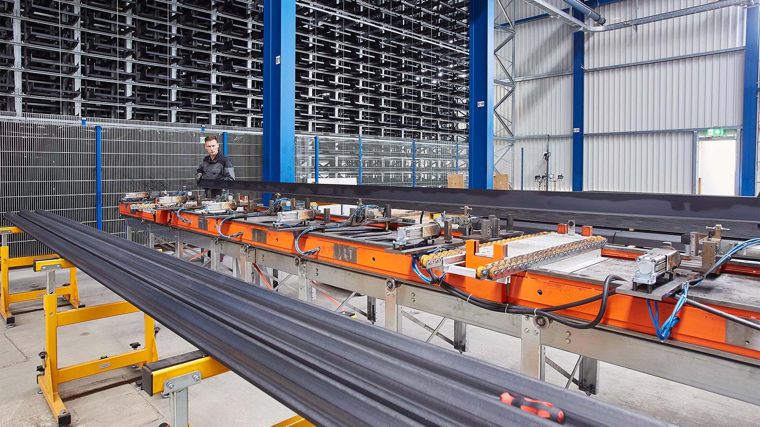 Automatic storage systems for long goods can often comprise several thousand cassettes. Delivering completely welded, voluminous load carriers by truck involves high freight costs and high CO2 emissions – so KASTO has now developed a solution which reduces this transport effort down to a minimum: when constructing new UNICOMPACT long goods storage systems, the specialist company can produce the required cassettes on the customer’s site, using a mobile, automated production system.