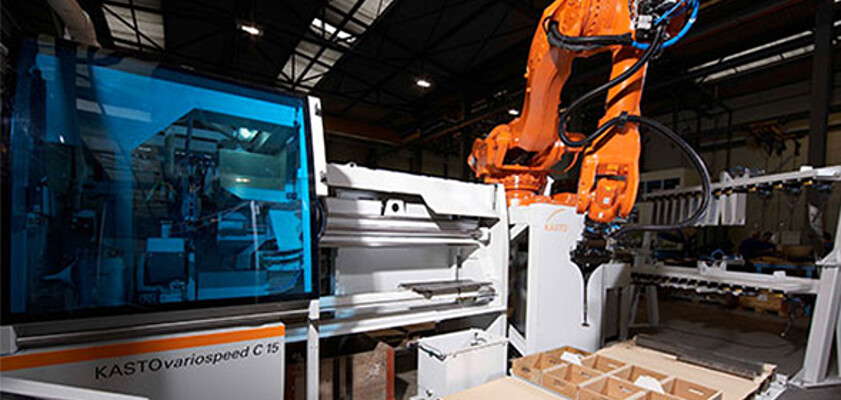 En 2003, le premier système de manutention robotisé KASTOsort a été intégré sur une machine à scier KASTO.