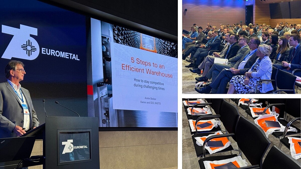 Un moment fort : Armin Stolzer, associé gérant de KASTO, a présenté une conférence sur le thème « Efficient warehousing in challenging times », apportant des pistes concrètes pour rendre les processus de stockage dans le commerce de l’acier plus efficaces, numériques et pérennes en période de changement.