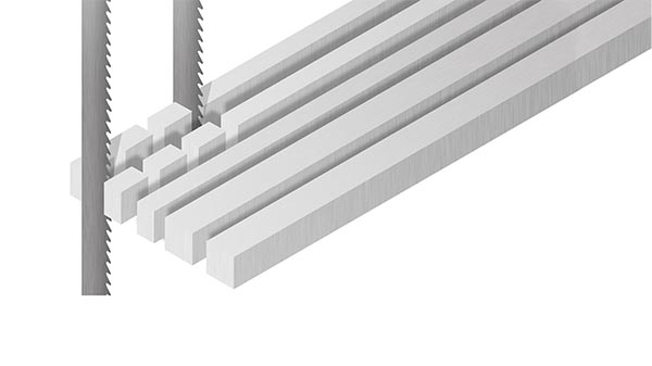 - Grâce à l'utilisation de rubans bimétal ou carbure, on peut obtenir des rendements de coupe élevés dans toutes les nuances de matière, même les plus difficilement usinables, telles le titane, l'hastelloy ou l'inconel.