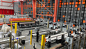 La table élévatrice à ciseaux intégrée avec convoyeur à rouleaux motorisé permet d'utiliser des emplacements tampons superposés. Cela permet non seulement d'économiser une surface précieuse, mais aussi de garantir une disponibilité élevée et constante de la matière.