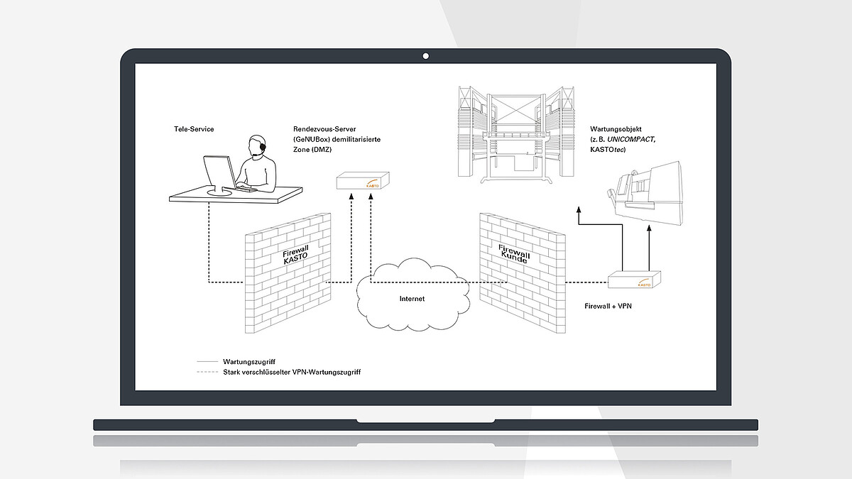 Plus de 80% des pannes signalées peuvent être résolues sans l'intervention d'un technicien. La sécurité de la solution VPN KASTO est garantie par l'utilisation de matériel de sécurité certifié.