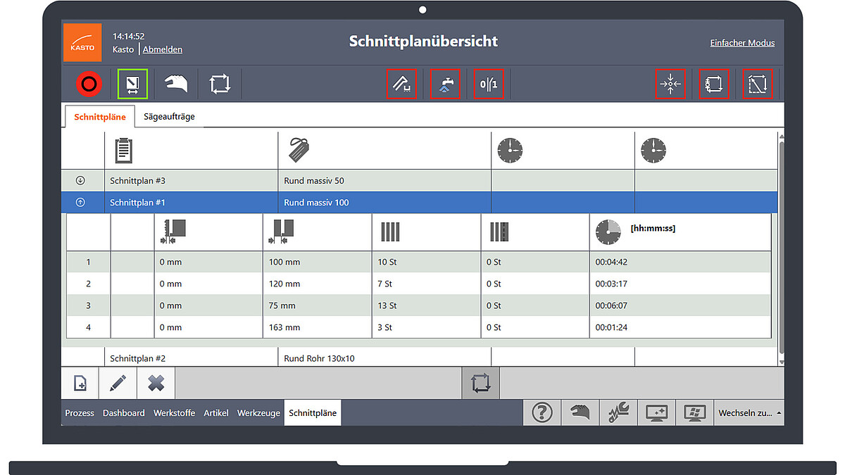 Avant même son lancement sur le marché, le nouveau système de commande KASTO a été testé de manière intensive dans le cadre de la production quotidienne chez Günther + Schramm à Königsbronn. Dans le cadre d'un fonctionnement en plusieurs équipes avec utilisation parallèle de plusieurs scies, il a convaincu par sa clarté, sa rapidité d'utilisation et sa grande fiabilité.