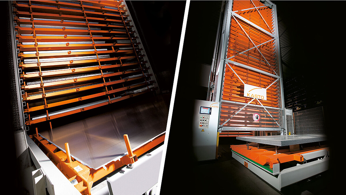 Der UNITOWER für Blech ist optimal auf die Anforderungen der Blechverarbeitung ausgelegt und kann flexibel für verschiedene Beladehöhen genutzt werden.