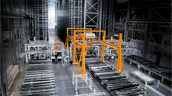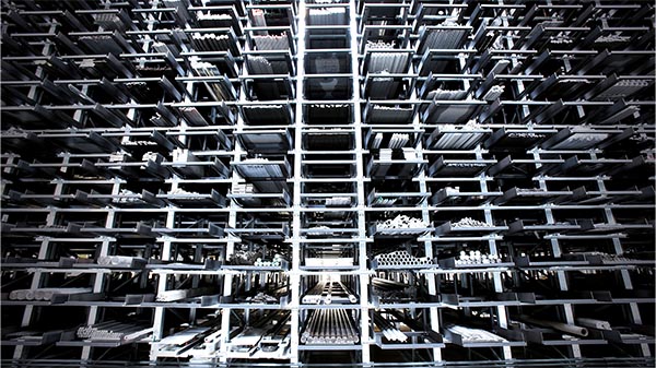 Die geringen Anfahrmaße des Regalbediengerätes sorgen dafür, dass möglichst viel Raum für Lagerzwecke genutzt wird. Nach dem Prinzip „Ware-zum-Mann“ stellt das Langgutlager UNICOMPACT die angeforderten Waren schnell an den Ausgabestationen bereit. Ein umfangreiches Stationsangebot steigert die Effektivität für individuelle Säge- und Kommissionieraufgaben für Vollmaterialien oder Profile aus Stahl, Aluminium, Kunststoff oder Nicht-Eisen-Metallen.