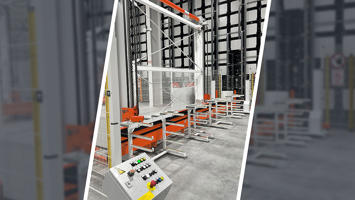 Über Nacht stellt das Regalbediengerät (RBG) die benötigten Kassetten auf definierten Pufferplätzen bereit. Die Liftstation übernimmt diese Kassetten und bringt sie mittels einer manuell steuerbaren Hubtraverse exakt auf die Bearbeitungsebene. Dabei kann der Bediener auf bis zu fünf übereinanderliegende Kassettenplätze im Regalblock zugreifen – flexibel, präzise und kraftsparend.