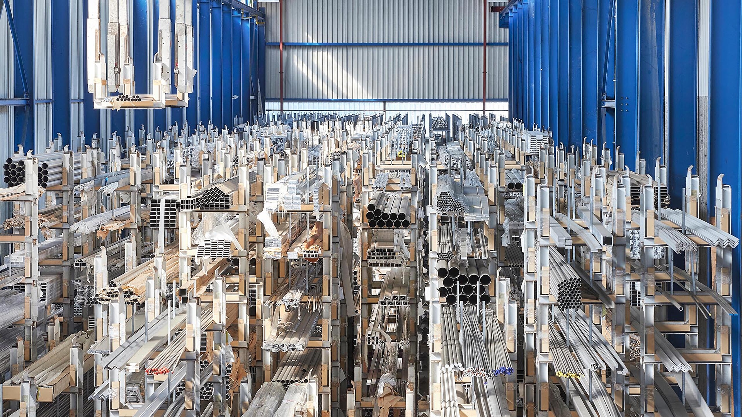 Mit rund 100 Mitarbeiterinnen und Mitarbeitern sowie einem ausgedehnten Maschinenpark ist SÜLZLE Hagmeyer am Werk in Geislingen der Stahl- und Metallhändler unter anderem für Rohre, Flachstahl, Rundstahl und Profile aus Edel- und rostfreiem Stahl sowie Aluminium und anderen NE-Metallen. Um fein geschliffene und polierte Erzeugnisse vor Verschmutzung und mechanischen Beschädigungen zu schützen, lagert das Traditionsunternehmen die Halbzeuge in einem eigenen Stapeljoch-System, bevor sie in den Versand gehen. Das Langgutlager des Typs UNIBLOC A von KASTO wurde bereits 2001 in der eigens dafür errichteten Lagerhalle installiert und arbeitet seither zwischen 50 und 100 Positionen am Tag ab. Auf der rund 98 Meter langen und 10 Meter breiten Lagerfläche deponiert der Stahl- und Metallhändler bis zu 2.000 Tonnen Stahl und Aluminium.