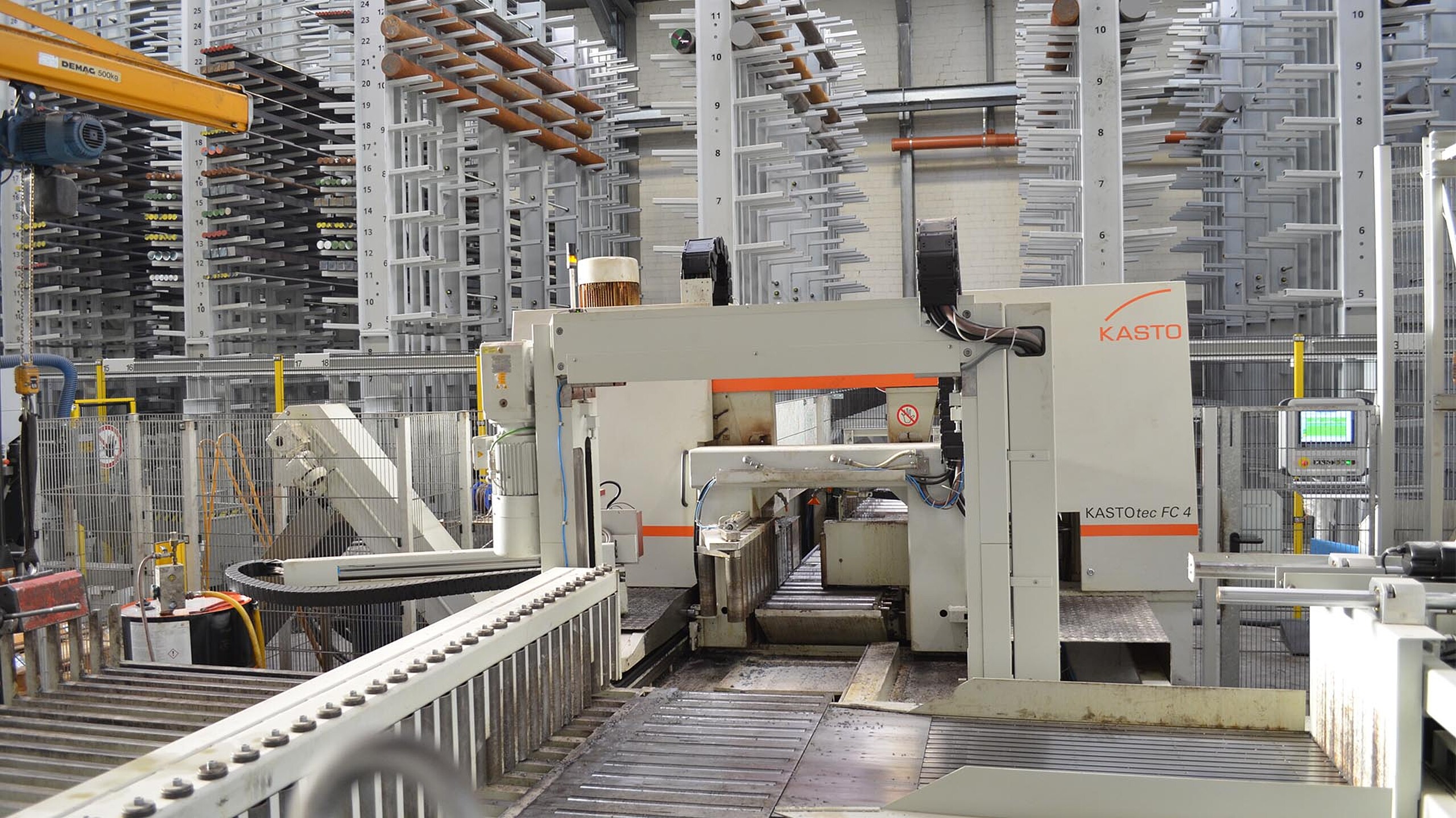 Um diese zu bewältigen, setzt Weser Stahl auf einen hochmodernen Maschinenpark. Mehrere Band- und Kreissägen stehen für den Zuschnitt der verschiedenen Materialien bereit. Lieferant ist seit vielen Jahren KASTO: Die Maschinen des Herstellers aus dem süddeutschen Achern sind aufgrund ihrer Qualität und Leistungsfähigkeit in der gesamten Firmengruppe etabliert. „Wir schätzen KASTO als kompetenten Partner, der auch für individuelle Anforderungen immer eine geeignete Lösung in petto hat“, berichtet Krummenerl. Daher wandten sich die Verantwortlichen bei Weser Stahl auch mit einem weiteren ambitionierten Projekt an den Säge- und Lagertechnik-Spezialisten.