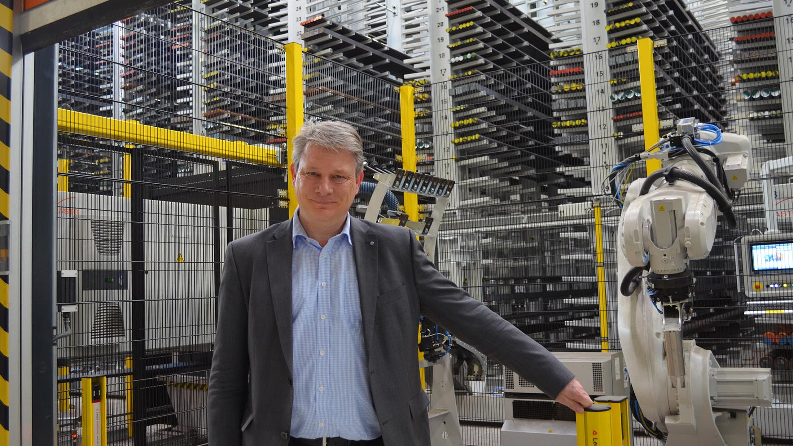 Reststücke werden über die Fördertechnik und das RBG zurückgelagert. Letzteres verfügt über eine spezielle Modifikation, so dass es nicht nur einen, sondern auch mehrere Stäbe gleichzeitig transportieren kann. „In der Standardausführung war das nicht möglich, aber KASTO hat das Gerät entsprechend unseren Wünschen umgebaut – in seiner jetzigen Form ist es weltweit einzigartig“, berichtet Stieven Harder, und Dr. Markus Krummenerl ergänzt: „An diesem Beispiel sieht man deutlich, wie gut KASTO auf die individuellen Anforderungen seiner Kunden eingeht. „Egal ob bei der Umsetzung von Sonderanfertigungen oder bei der Service-Betreuung nach Inbetriebnahme: Wir fühlen uns hier rundum sehr gut aufgehoben.“