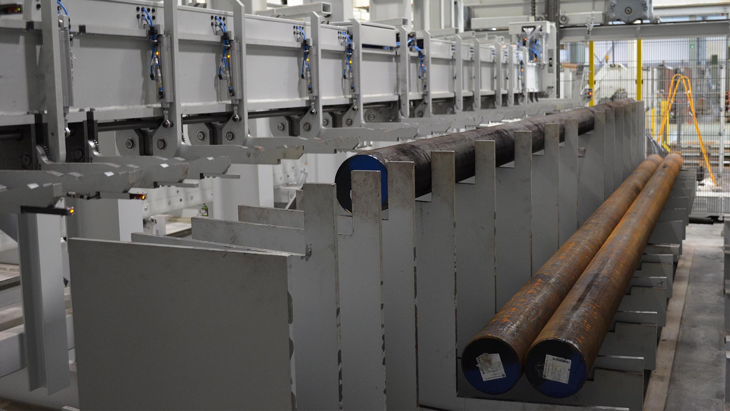 Ziel war es, die Versorgung der Sägen zu automatisieren und einen weitgehend mannlosen Betrieb zu ermöglichen, um die steigenden Auftragszahlen zu bewältigen und die immer umfangreicheren Anarbeitungswünsche der Kunden zu erfüllen. „Ein weiterer wichtiger Aspekt für uns war die Arbeitssicherheit“, ergänzt Krummenerl. „Wir wollten das Umfeld für unsere Mitarbeiter ergonomischer gestalten und ihnen die tägliche Arbeit erleichtern – damit beugen wir aktiv Unfällen und Verletzungen vor.“ Bislang wurde das Material manuell per Hallenkran auf die Sägen transportiert – ein aufwendiger und nicht ungefährlicher Prozess bei den teils tonnenschweren Stäben und Rohren. „Wir haben uns daher an KASTO gewandt und sie gebeten, verschiedene Lösungsvorschläge zu erarbeiten.“