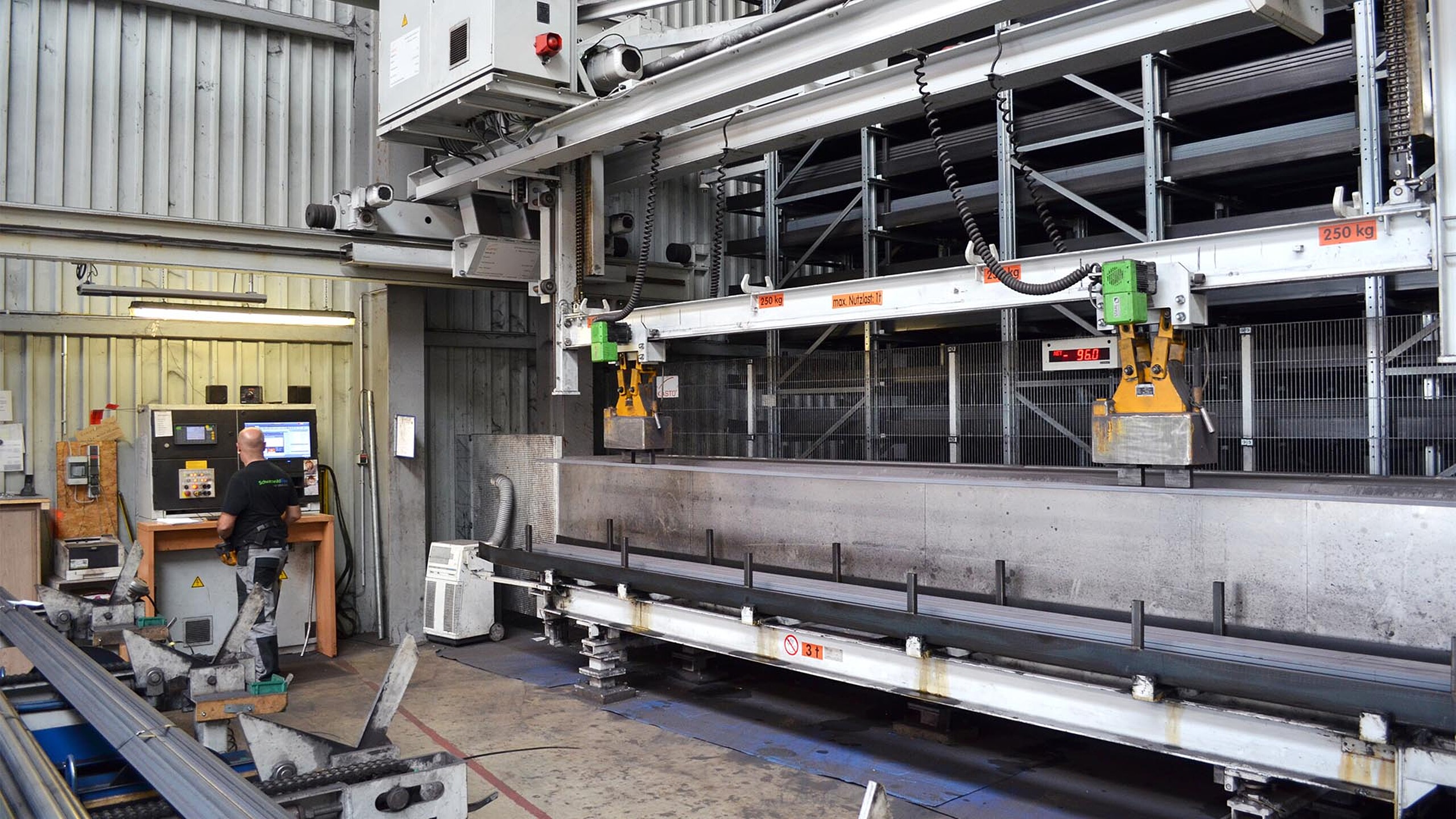Dieser Ansatz zeigt sich auch in der Lagertechnik. Hier vertraut SchwarzwaldEisen auf die KASTO Maschinenbau GmbH & Co. KG als bevorzugten Partner. Am Hauptsitz in Lahr etwa sorgt seit rund acht Jahren ein automatisches Langgutlager vom Typ UNICOMPACT 3.0 für eine schnelle und effiziente Ein- und Auslagerung der bis zu sechs Meter langen Profile, Rohre und Vollmaterialien. SchwarzwaldEisen bietet seinen Kunden ein Sortiment von rund 10.000 Artikeln, hauptsächlich Baustahl, Edelstahl und Aluminium. „Etwa 70 bis 80 Prozent der Bestellungen im Bereich Profilstahl sind angearbeitet“, berichtet Geschäftsführer Auer. Dieses wird im eigenen Maschinenpark in Freiburg entsprechend der Kundenwünsche vorbereitet und anschließend versandt. Handelt es sich bei der Ware um Langgut bis 6 Meter Länge, stellt das KASTO-System mit einem Regalbediengerät (RBG) die benötigten Artikel mit kurzen Zugriffszeiten nach dem Prinzip „Ware-zum-Mann“ an einer von zwei Auslagerstationen bereit. Bleche hingegen bewahrt das Unternehmen in einem separaten, manuell bedienten Lagerbereich auf.