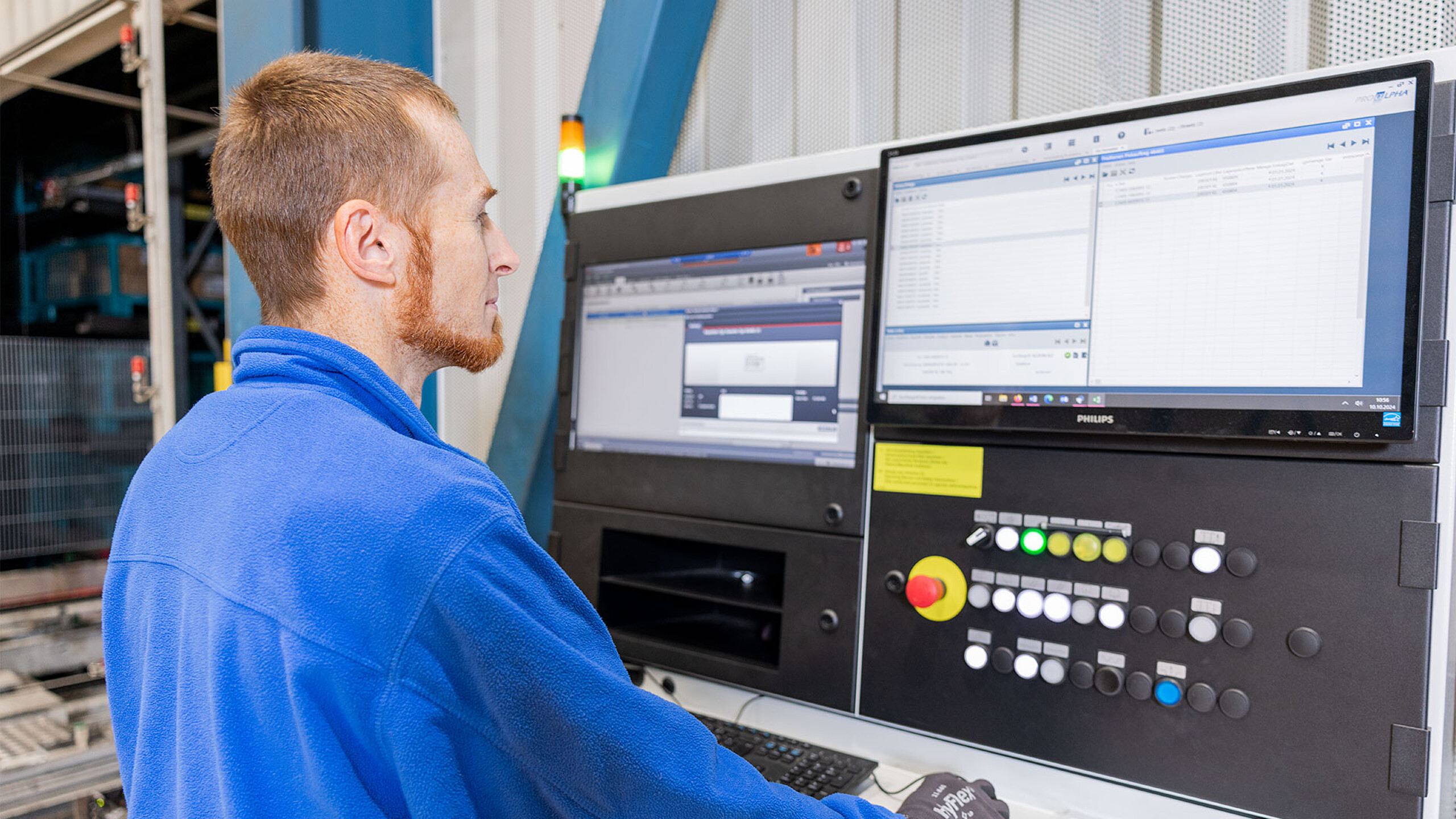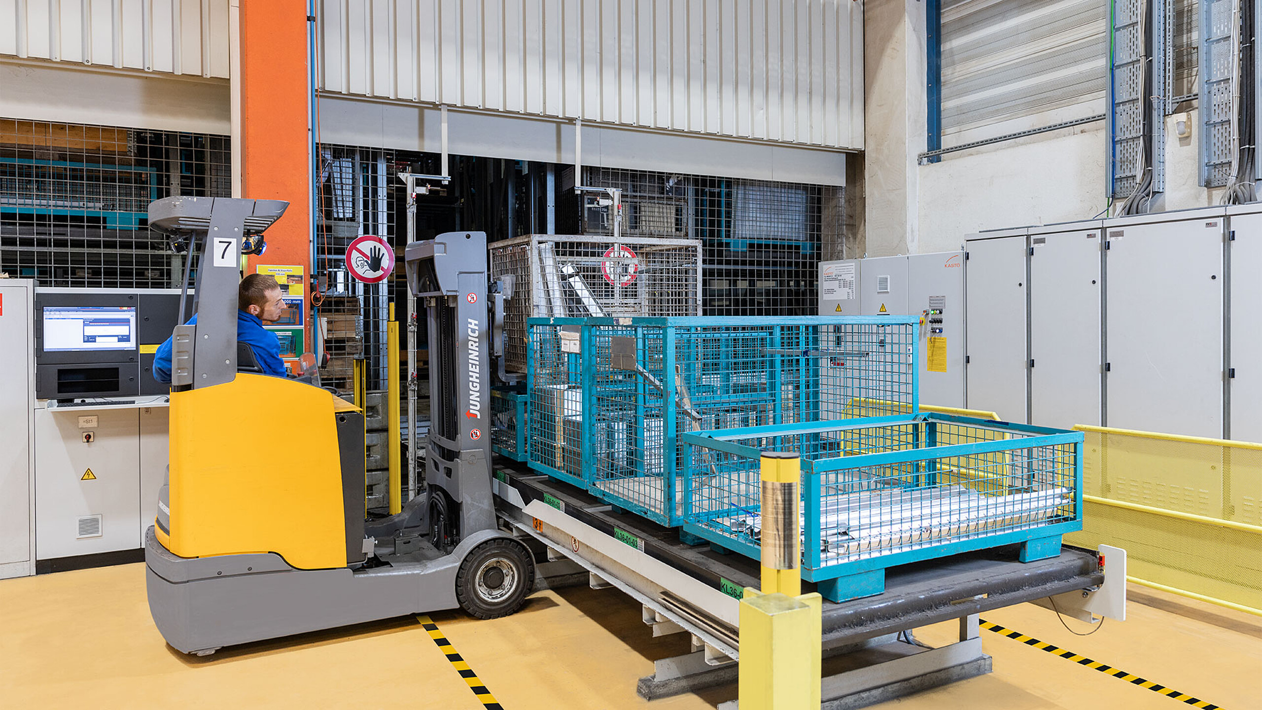 Damit war auch schon die Hauptanforderung an das Retrofit definiert: „Es muss schnell gehen, und die Produktion sollte nur geringfügig beeinträchtigt werden. Deshalb erfolgte das Projekt zum Jahreswechsel 2023/2024“, berichtet Holger Guddat. Mit eigenen Mitarbeitern bereitete KWM alles vor. Dazu gehörte zum Beispiel, den großen Schaltschrank des Regalbediengeräts (RBG) in das Lager einzubringen. „Der Kasten war zu groß für den Personenzugang. Wir lösten die Aufgabe mit einem Scherenhubtisch, den wir ins Lager einbrachten und einer der Ausgabestationen, über die wir den alten Schaltschrank aus- und den neuen einfuhren.“