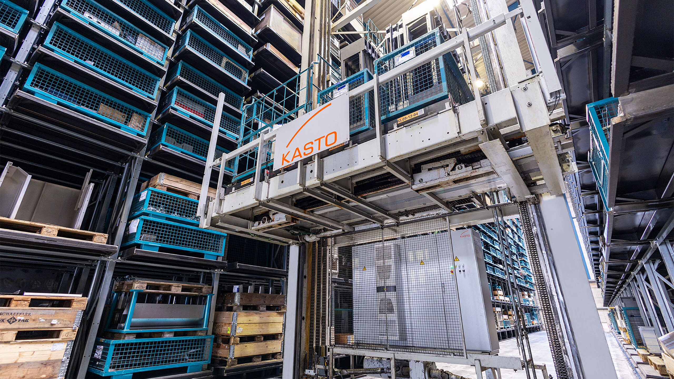 Am 2. Januar 2024 ging es dann richtig los. Zehn Monteure von KASTO erneuerten die komplette Elektrik. Sie tauschten die Schaltschränke inklusive aller Regel- und Steuergeräte aus, ersetzten die Stationsbedienpulte, stellten die Bustechnologie auf PROFINET um, modernisierten die Energiezuführung zum RBG und zur Hubtraverse sowie sämtliche Antriebsregler. Sie passten die Sicherheitseinrichtungen wie Endabschaltung für Hubwerk und Längsfahrt, das Notaussystem, die Schutztür sowie die Lichtschranken an aktuelle Vorgaben an. Hinzu kam das Upgrade des Lagerverwaltungssystems (WMS) KASTOlvr auf KASTOlogic. Außerdem überarbeiteten sie die Dokumentation. „Es gab viel zu tun, aber nach sieben Arbeitstagen hatten sie es wie geplant geschafft“, sagt Holger Guddat mit Respekt. Bei der anschließenden dreitägigen Inbetriebnahme durch die Mitarbeiter von KASTO schulten sie die KWM-Beschäftigten im Umgang mit der neuen Technik. Seither ist das Lager wieder vollständig einsatzbereit für den Zwei-Schicht-Betrieb. Über eine Schnittstelle arbeitet KASTOlogic mit dem ERP-System proALPHA reibungslos zusammen.