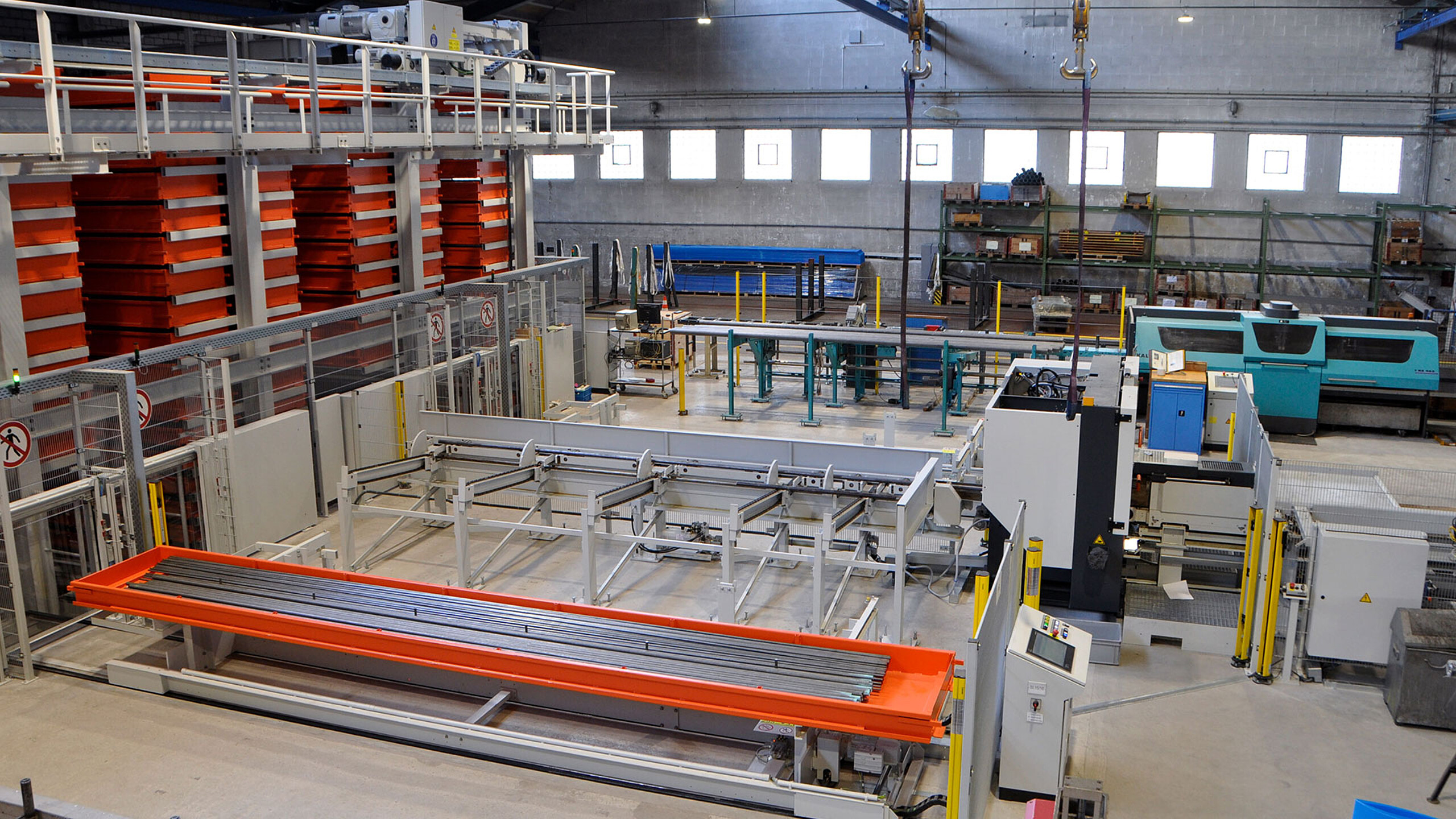 Die Anforderungen des Metallspezialisten waren komplex: Das neue System musste eine doppelt so hohe Lagerkapazität bieten, in die 26 Meter breite Halle 5 passen und sowohl 6-Meter- als auch 12-Meter-Langgutmaterial lagern können. Es sollte zuverlässig arbeiten und sich leicht bedienen lassen. Auf der Wunschliste stand außerdem die Möglichkeit, sieben verschiedene Ein- und Ausgabestationen zu realisieren, um das Material zeitgleich einzulagern und mit mehreren Sägen zu bearbeiten. Eine besondere Herausforderung war die notwendige Kapazität – denn neben der Fläche war auch die Höhe begrenzt, da auf dem Hallendach eine Photovoltaik-Anlage für grünen Strom sorgt.