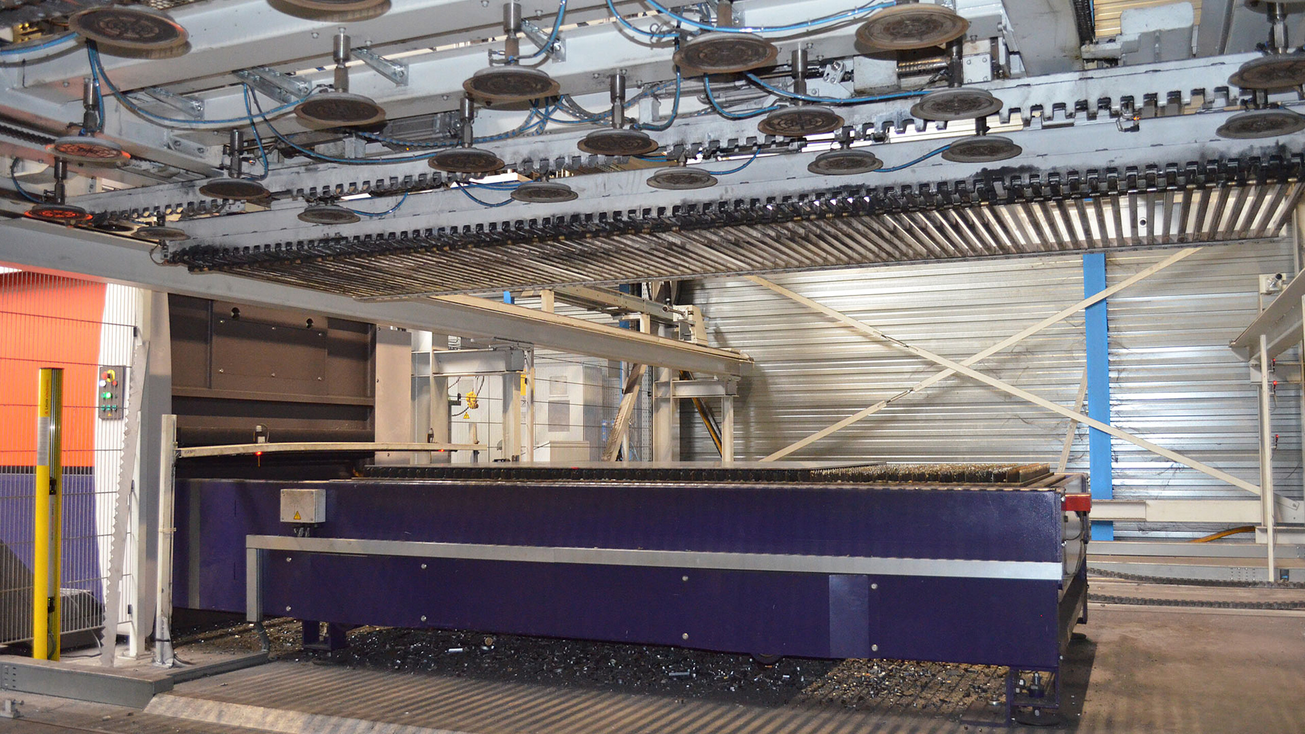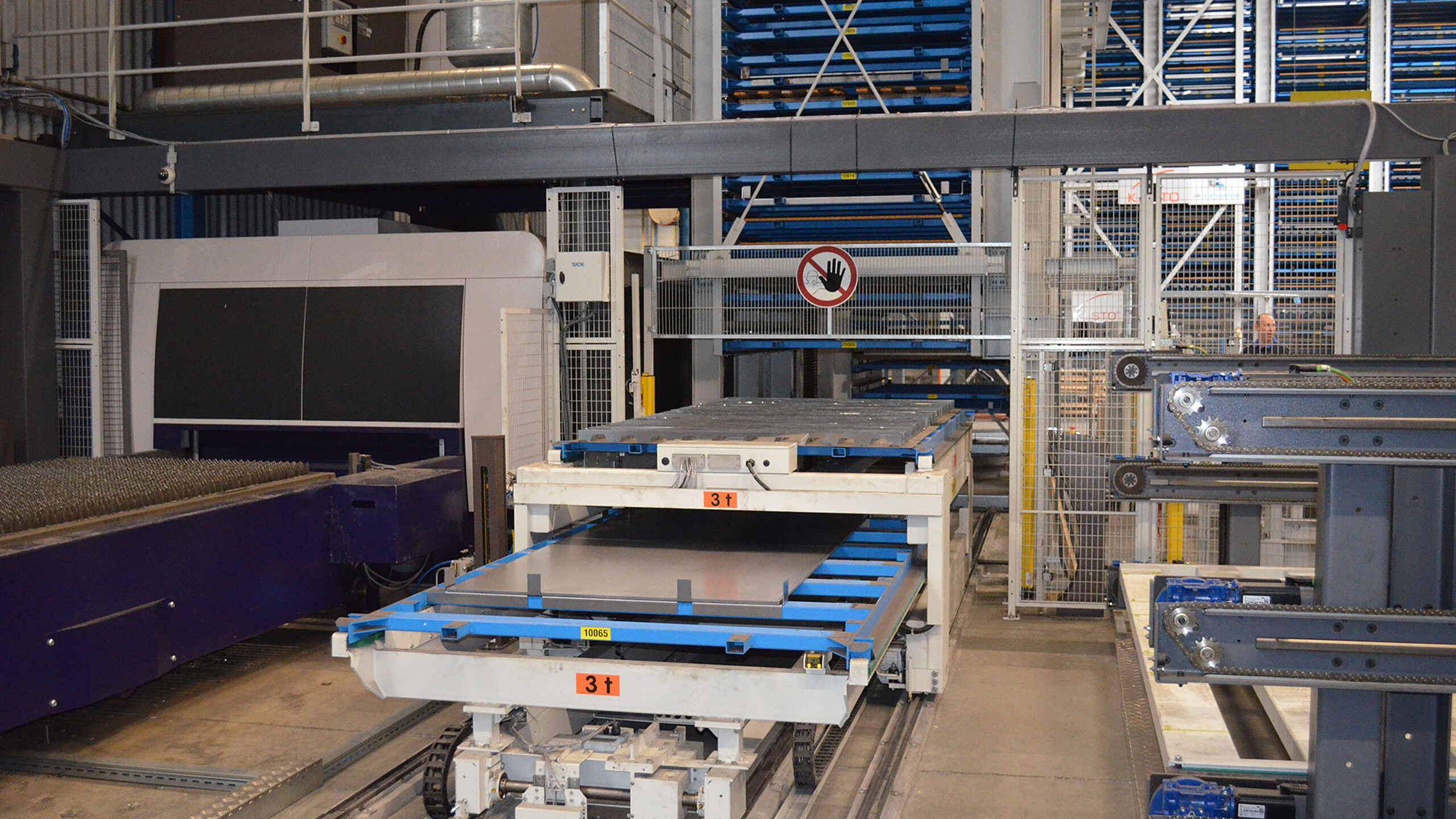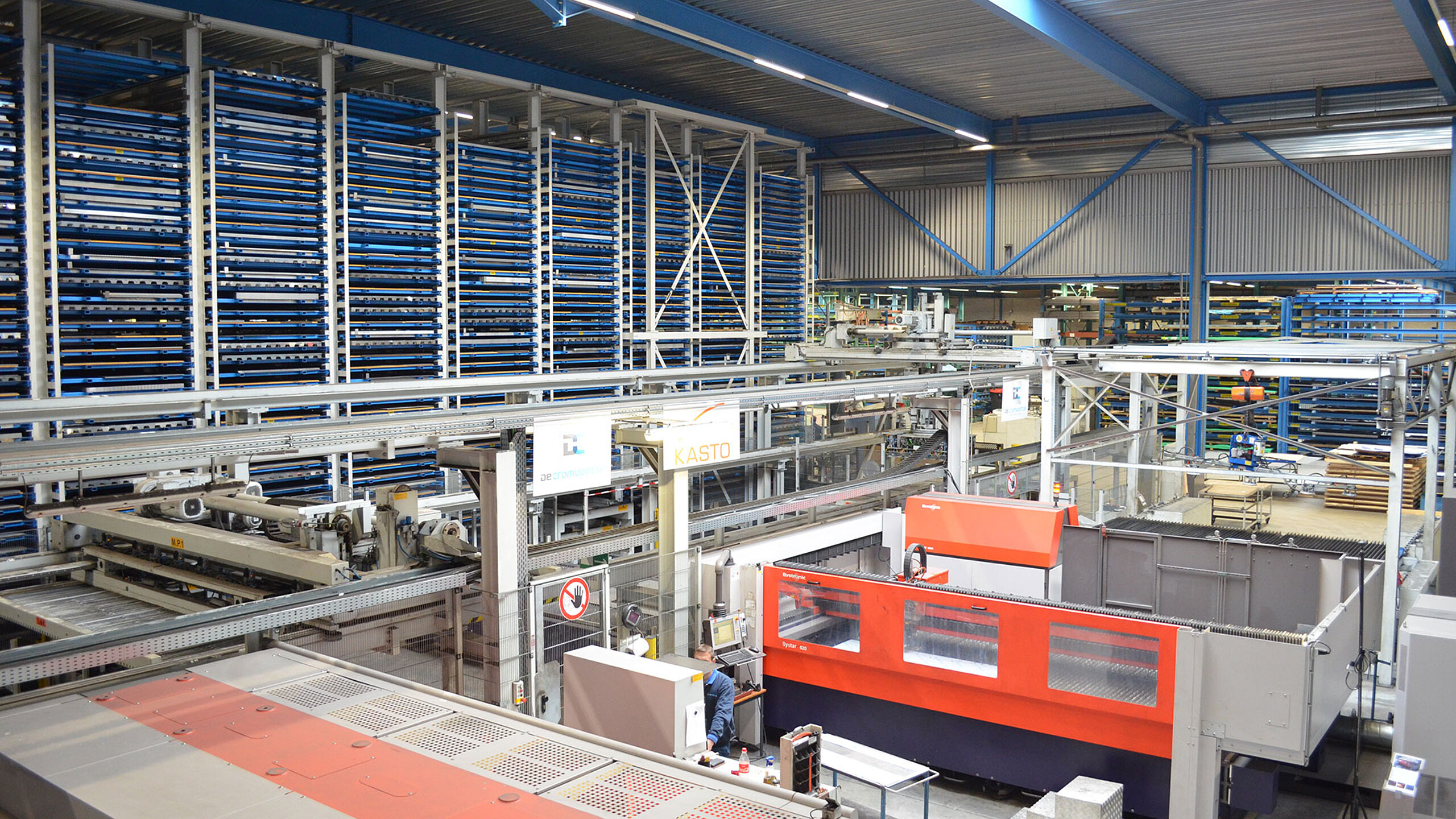 „Als wir uns damals für die Investition in ein neues Lager entschieden haben, fiel unsere Wahl schnell auf KASTO“, erinnert sich Janwillem Verschuuren. „Wo nämlich andere Hersteller uns nur unbefriedigende Standardlösungen angeboten haben, hat KASTO bereits in der Projektierungsphase konstruktiv mit uns zusammengearbeitet, neue Ideen einfließen lassen und ganz klar gesagt, was möglich ist und was nicht.“ Möglich war zum Beispiel, zwei Flachbett-Laserschneidmaschinen nahtlos in den durchgängigen Materialfluss zu integrieren. Dazu installierte KASTO an den Auslagerstationen des UNILINE zwei Manipulatoren, die die Bleche aus dem Lager mithilfe von Vakuumsaugern direkt auf die Wechseltische der beiden Maschinen heben und auch die fertigen Teile und Reststücke wieder entnehmen.