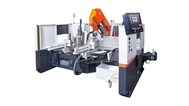 Vollhydraulischer Bandsägeautomat in stabiler Bauart, zur konsequenten Lösung sämtlicher Abläng- und Gehrungssägeaufgaben bei Trägern, Rohren und Profilen. Kühlmitteleinrichtung zum Sägen von Vollmaterialien in Geradschnitten mit Emulsionskühlung im Werkstattbereich. Neben Geradschnitten sind auch Gehrungsschnitte sehr flexibel und schnell auszuführen, wozu sich das Sägeoberteil sehr einfach nach rechts bis 60° verstellen lässt. Der Gehrungswinkel wird über eine gut ablesbare Winkelskala eingestellt. Gerad- und Gehrungsschnitte bis +45° nach rechts sind im Automatikbetrieb sowie im halbautomatischen Betrieb bis +60° rechts durchführbar. Mit der stufenlos einstellbaren Schnittgeschwindigkeit und dem stufenlos einstellbaren vollhydraulischen Sägevorschub ist ein feinfühliges und werkzeugschonendes Sägen gewährleistet.