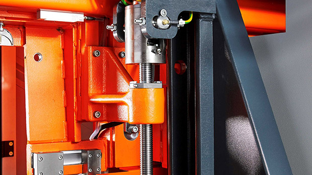 Ein stufenlos einstellbarer elektromechanischer Sägevorschub mit Servomotor und Kugelrollspindel bietet beste Voraussetzungen für ein effizientes, feinfühliges und werkzeugschonendes Sägen.